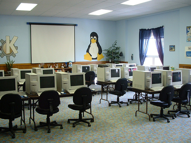 Une salle de classe sous le regard attendri de Tux: une utopie?