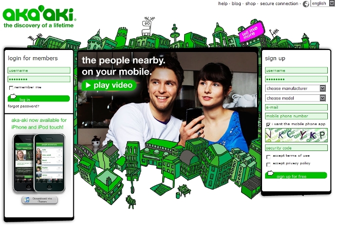Pour l’instant, l’aspect réalité augmentée n’est pas utilisé pleinement mais il est vrai qu’ajouter au profil et au format en 140 caractères deux couches supplémentaires, la géolocalisation à plusieurs échelles (tout près ou dans la ville) et les affinités (par stickers) donne à aka-aki un potentiel très fort. Pas étonnant que la start-up ait eu le prix de “l’idée qui va tout casser” au CEBIT en 2008.